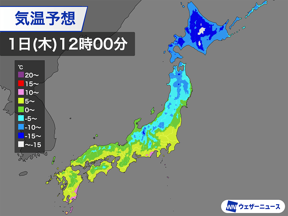 北海道は昨日と同様に真冬日となり、東北や北陸でも5℃未満の厳しい寒さが予想されます。