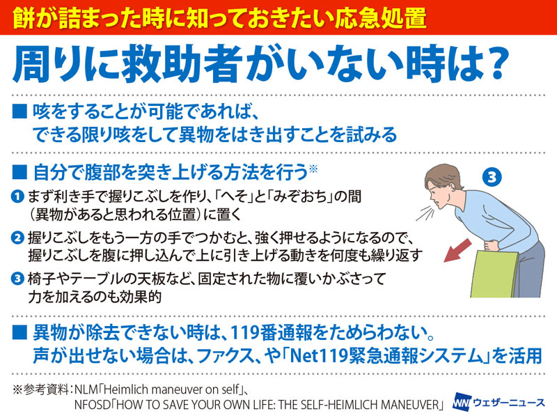 餅を喉に詰まらせない予防法・詰まったときの応急処置 周囲に人がいないときは?