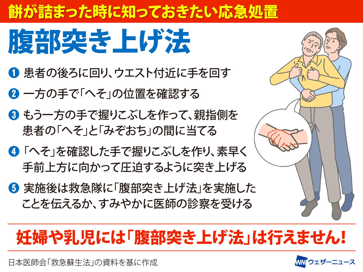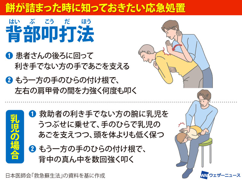 人が餅などをのどに詰まらせてしまったら、どのように対処すればいいのでしょうか。