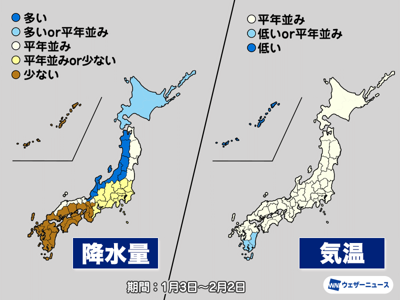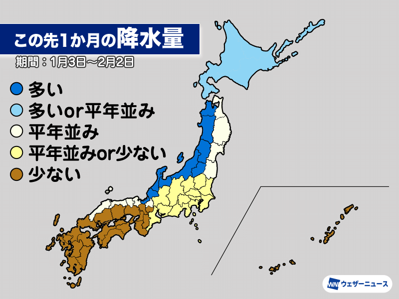 このため、平年に比べて晴れる日が多く、降水量は少ない傾向となりそうです。