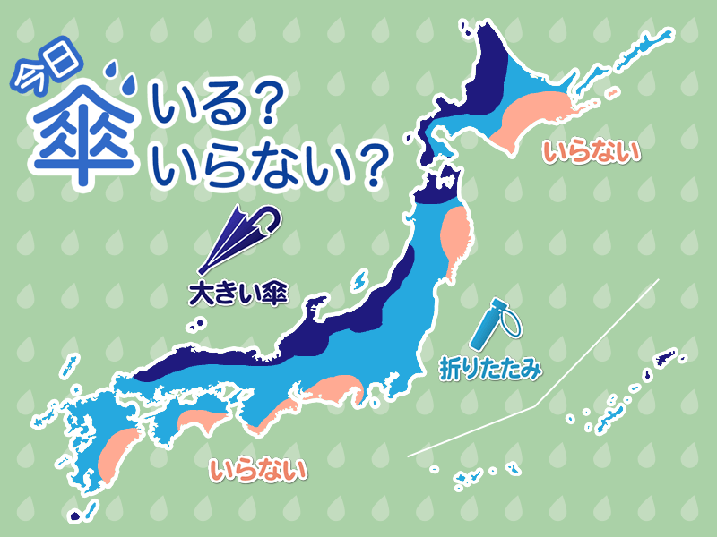 西日本の太平洋側も雪や雨の可能性があります。九州は午前を中心に、瀬戸内や四国、近畿中部や南部は午後を中心にご注意ください。折りたたみ傘をお持ちください。