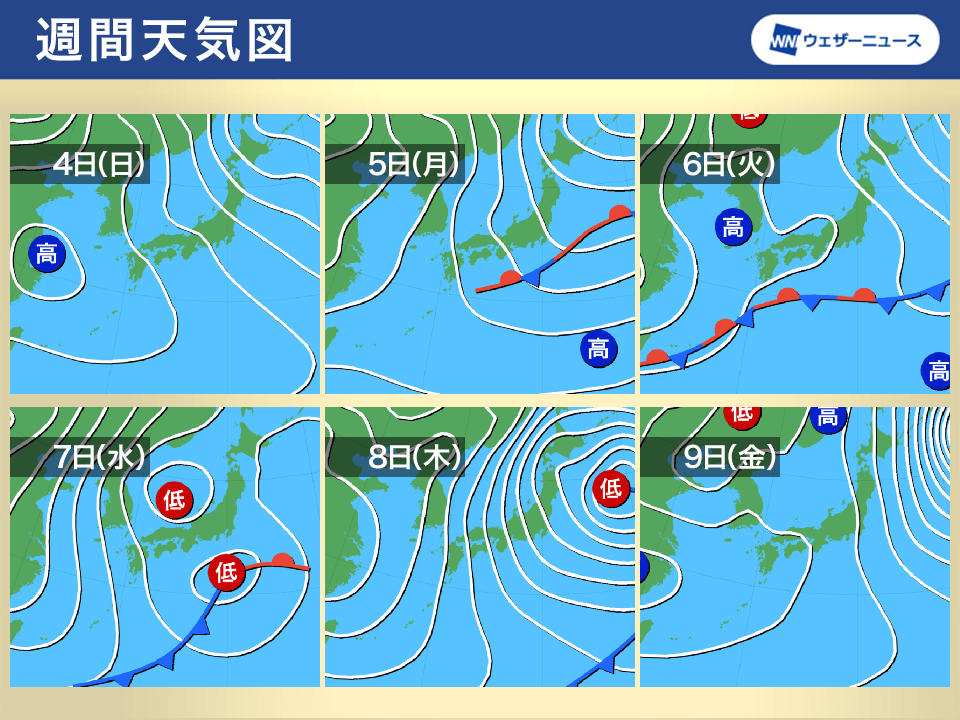 その後、8日(木)頃には再び冬型の気圧配置が強まり、日本海側の地域を中心に雪や風が強まる可能性があります。