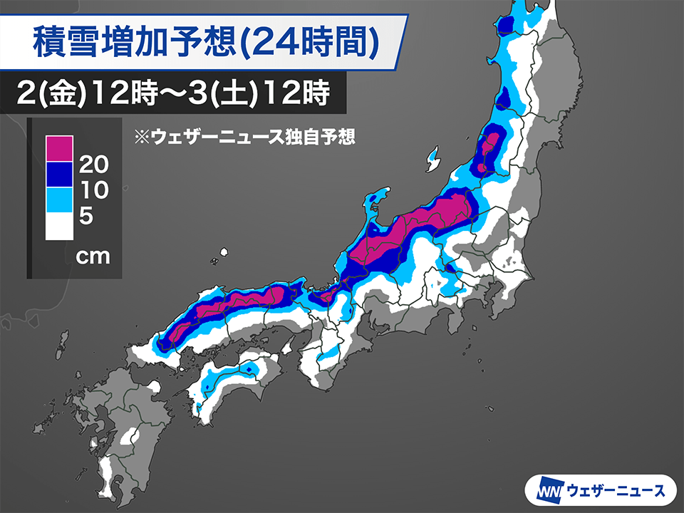 山沿いでは50cm前後の降雪となる所もある見込みで、北陸から近畿北部、山陰にかけての各地は大雪に注意が必要です。