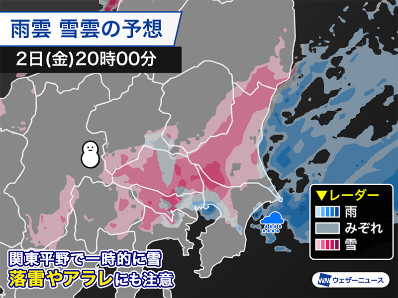 関東内陸部で雪雲が発生 夕方以降は都心周辺も雪の可能性