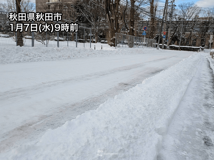 9時の時点で青森市の積雪は62cm、秋田市で22cmなど昨日までの雪がしっかりと残っています。そこに雨が降ることで、路面状態が悪化する見通しです。