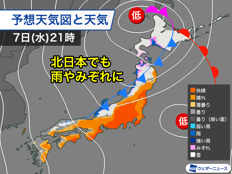 低気圧の接近で日本海側は天気下り坂 東北や北海道も雨で路面悪化