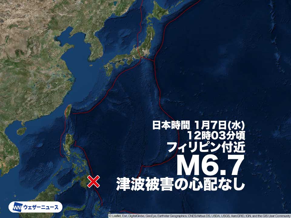 フィリピン付近でM6.7の地震 津波被害の心配なし