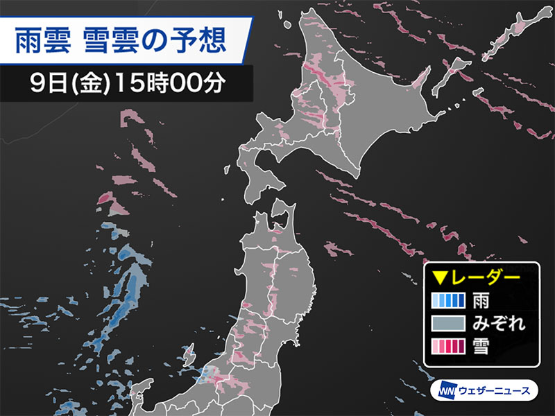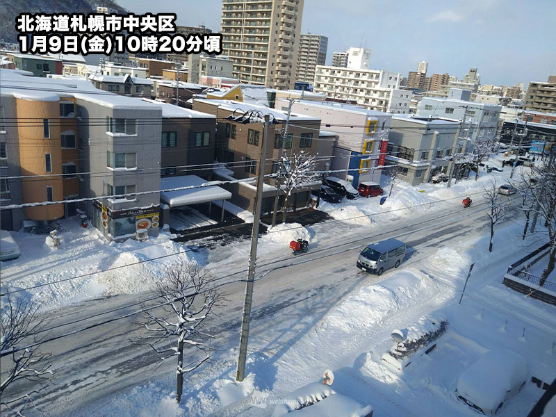 今日9日(金)も冬型の気圧配置が続いています。昨夜から今朝は、北海道から新潟県にかけての内陸部でまとまった雪が降りました。