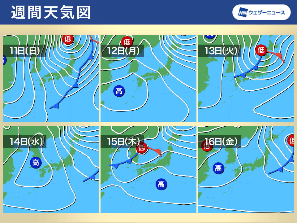 この先一週間は寒気が南下したり北上したりを繰り返すため、気温の変化が大きくなります。全国的には11日(日)から12日(月)が最も寒く、真冬の寒さとなります。