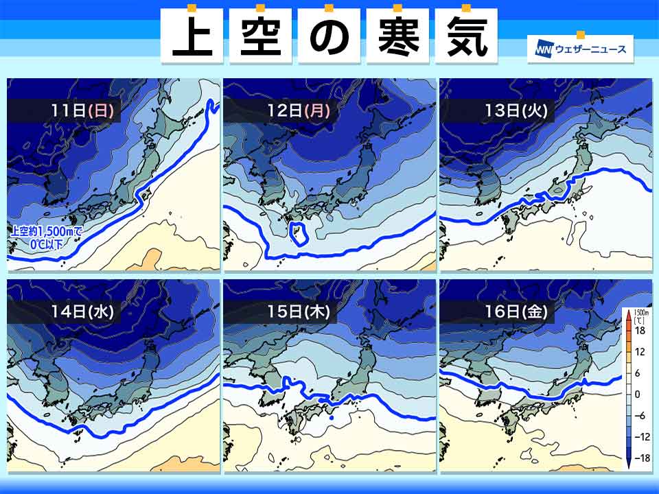 北日本では三連休後半の寒気よりも、14日(水)頃の寒気のほうが強い可能性も考えられ、油断をすることはできません。