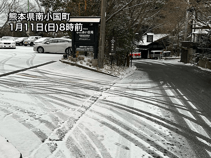 ウェザーニュースアプリ利用者からは九州の阿蘇周辺や雲仙市など、標高の高い所で雪の積もっている報告が届いています。
