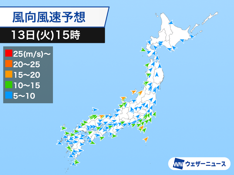 全国的に風が強くなる