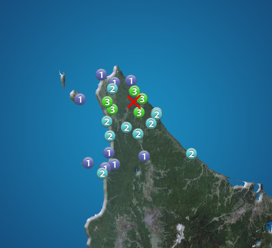 震度3以上を観測した地点