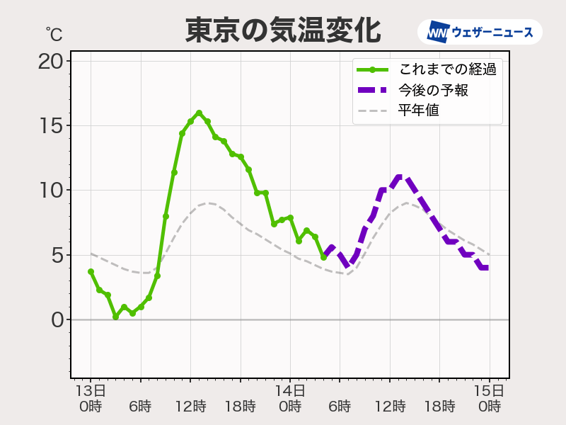 最高気温は5℃前後で、昼間も真冬らしい寒さです。
