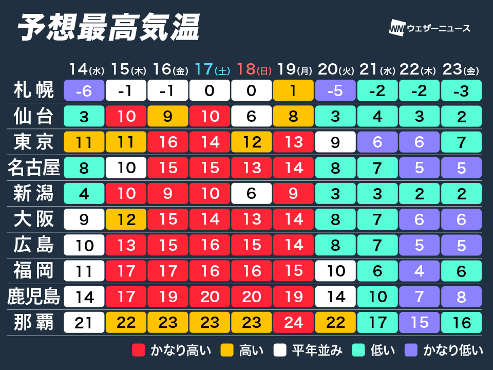 週末以降に大きな気温変化か