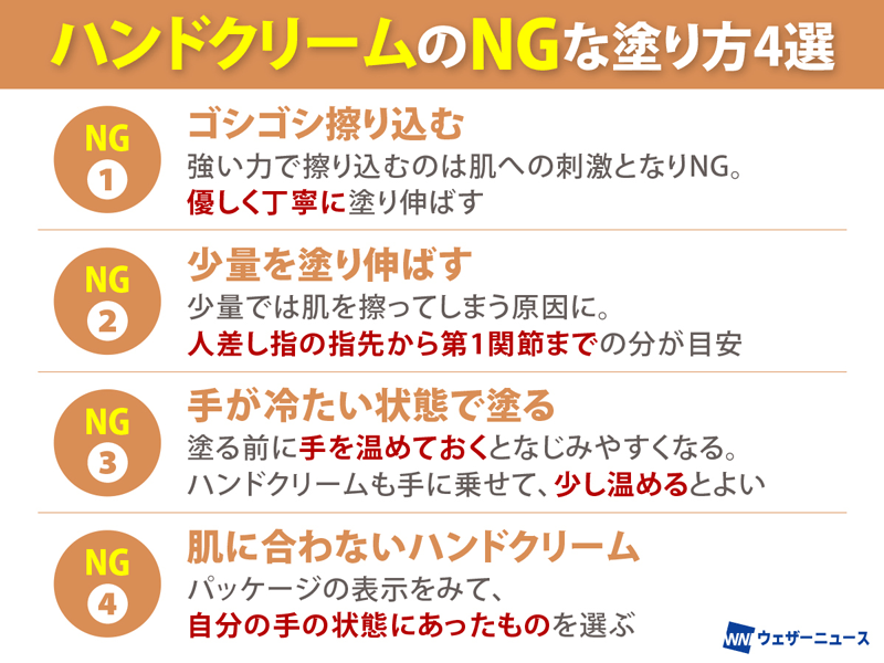 ハンドクリームのNGな塗り方