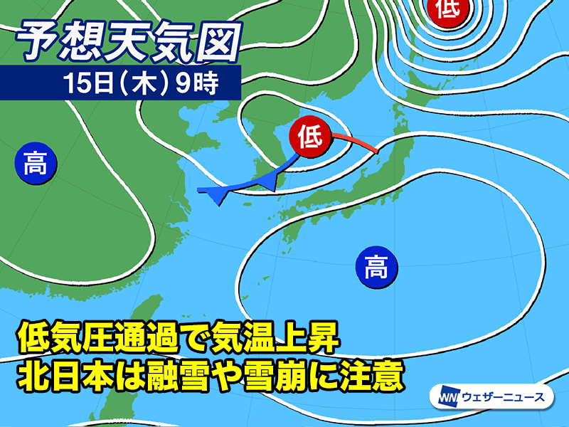明日は日本海から低気圧が接近 風の強まりや融雪に注意