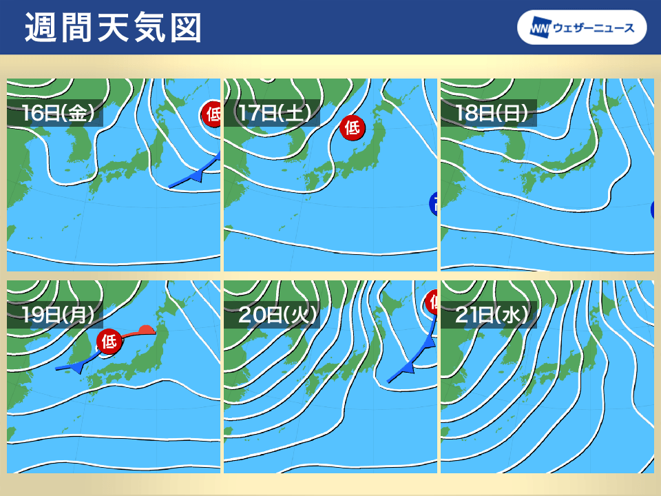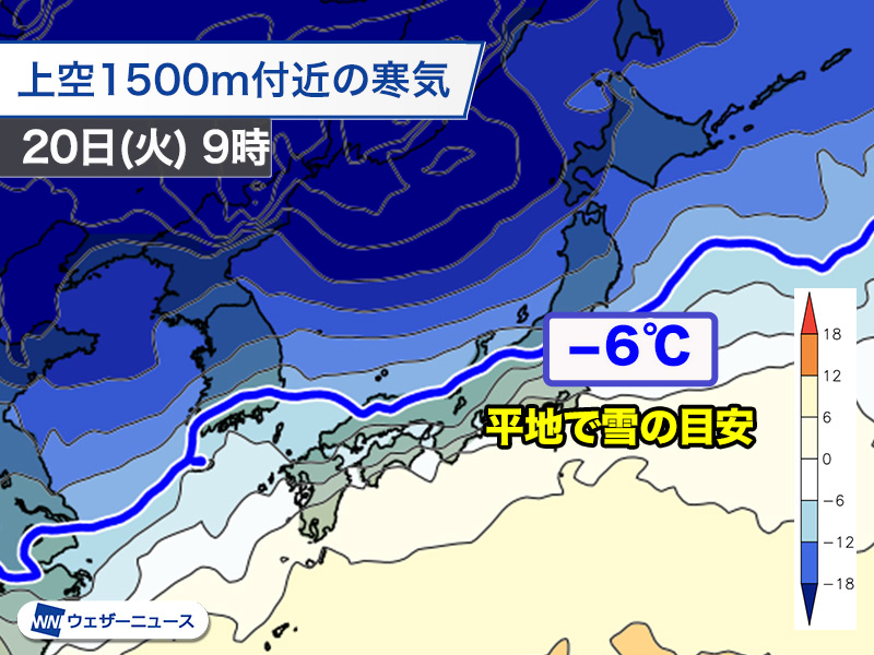 19日(月)は低気圧が発達しながら北日本を通過して、20日(火)の大寒の頃から冬型の気圧配置が強まる可能性があります。強い寒気が南下して日本海側を中心に大雪となることが考えられます。