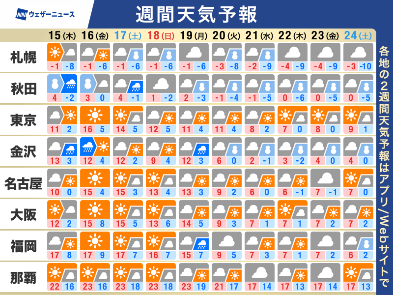 一旦寒さ緩むも来週は厳しい寒さへ