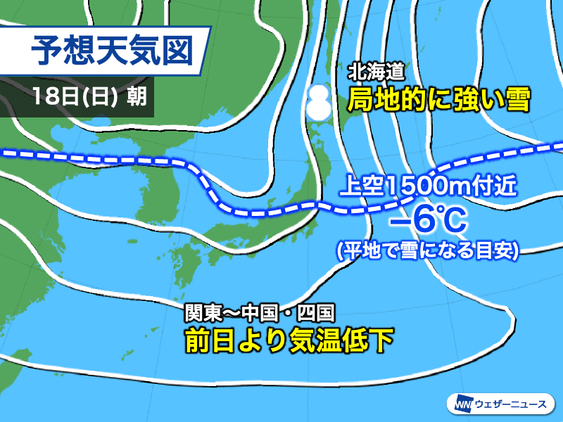 寒気が北上するため、東北南部から北陸は広い範囲で雨になります。北部も湿った雪になりそうです。雪が残っている地域では路面状況が悪くなるので、足もとには注意をしてください。