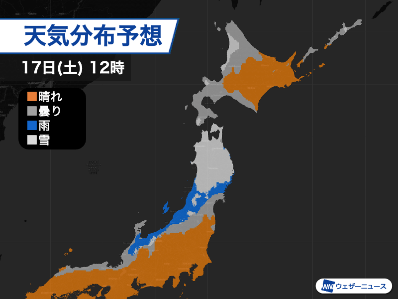夕方以降は次第に寒気が南下して、北の地域から雪に変わる見込みです。夜間は凍結にお気をつけください。
