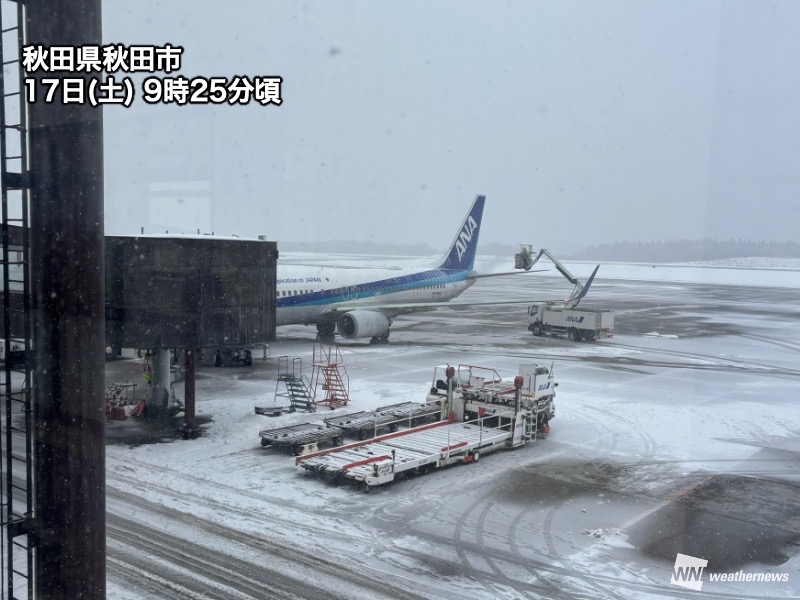 日本海を進む低気圧に伴う雲がかかり、東北北部は秋田県など日本海側を中心に雪が降っています。9時までの1時間に、秋田県秋田市雄和では2cm、秋田市秋田では1cmの降雪を観測しました。