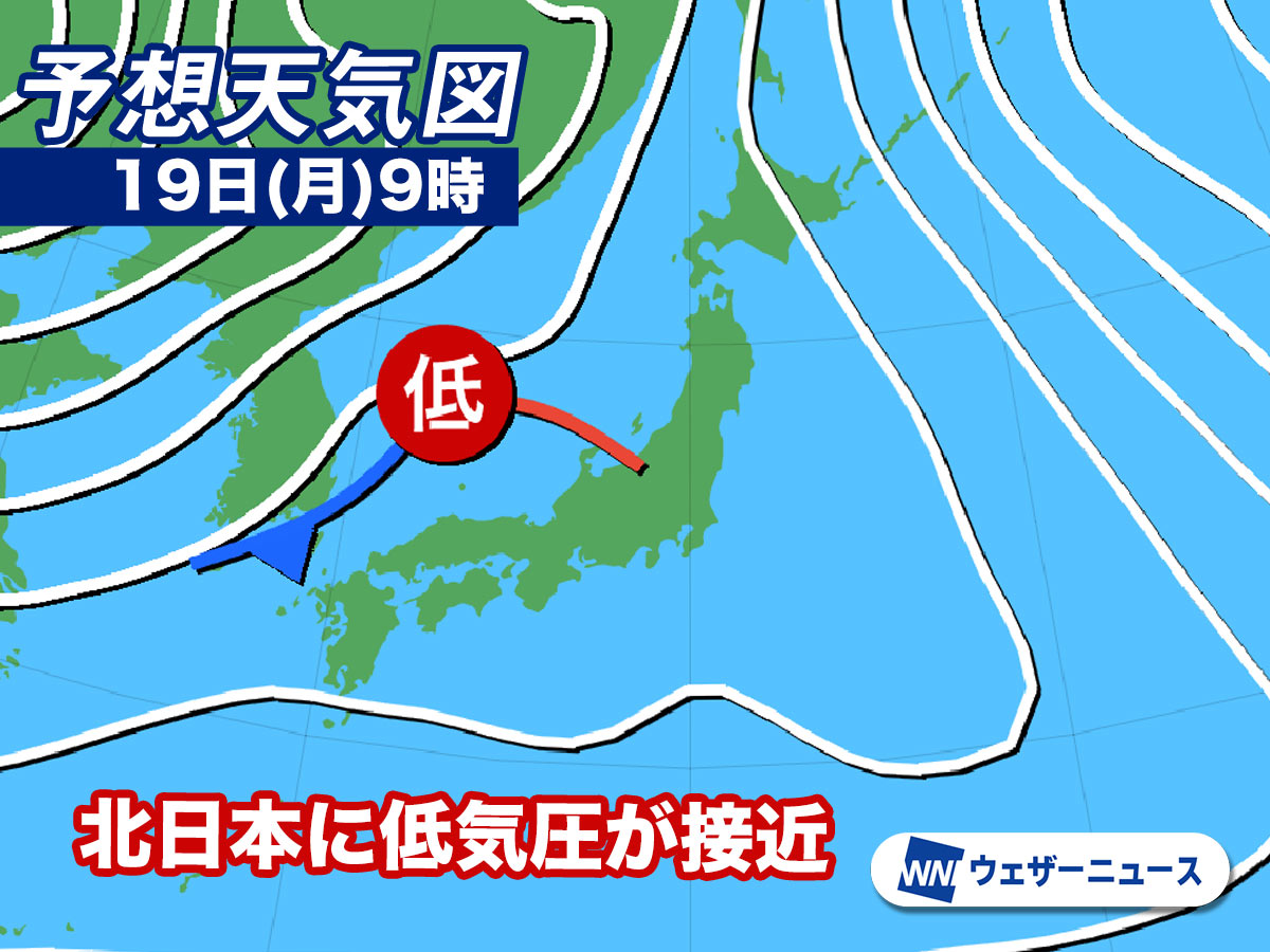 週明け19日(月)にかけて、北海道や東北北部では冬らしい寒さの日が多くなる一方、東北南部や東日本、西日本では季節を先取りした暖かさとなる予想です。