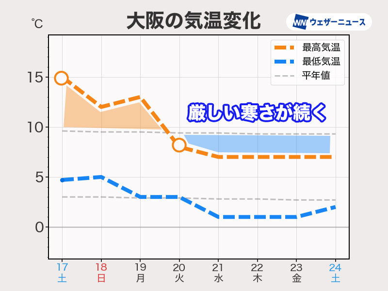 19日(月)頃から寒気が流れ込み始め、大寒の20日(火)以降は全国的に厳しい寒さが続く見通しです。一年で最も寒い時期ですが、その時期の平年を下回る気温の日が続くとみられます。