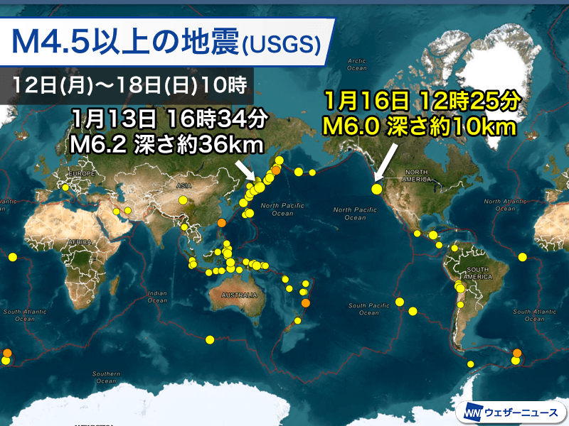 世界:アメリカ沖の太平洋でM6.0の地震