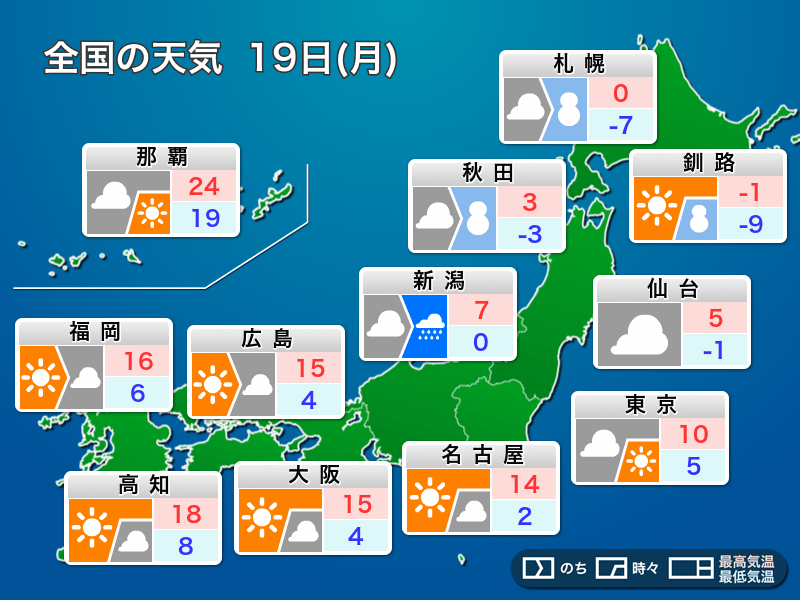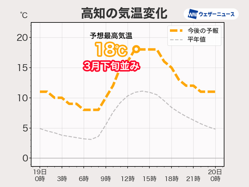 九州や四国では20℃近い所もあり、昼間は冬物の防寒着なしでも過ごせる暖かさになります。