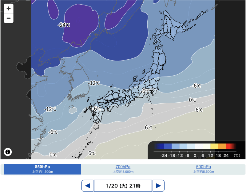 明日の夜からは強い寒気が上空に南下し、日本海側で広く大雪となるおそれがあります。今後の情報にご注意ください。