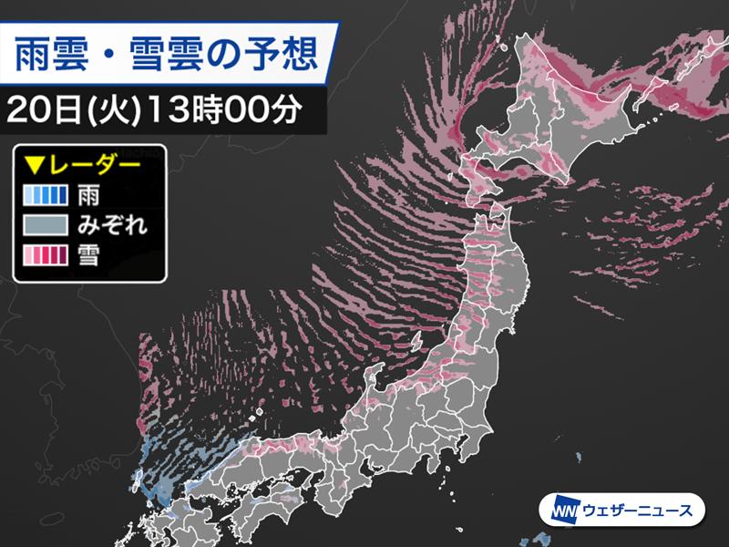 東北太平洋側は日差しが届いてもにわか雪が心配な空。北日本各地で真冬らしい寒さになりそうです。