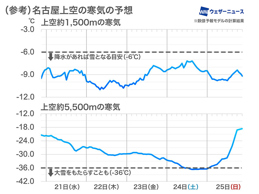 また、さらに高い上空約5,500mの寒気の予想をみると、北日本では今日21日(水)〜明後日22日(木)に、東日本や西日本では24日(土)〜25日(日)頃にピークを迎えることが予想されています。大気の状態が不安定となるため、このタイミングでも強い雪に警戒が必要です。