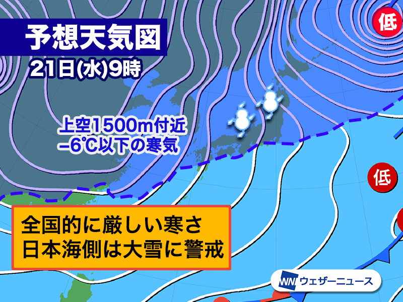 今季最も強い寒波が襲来 日本海側は大雪に警戒
