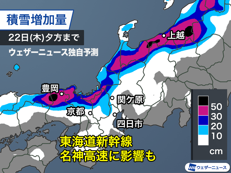日本海側で引き続き大雪警戒 東海でも積雪のおそれ