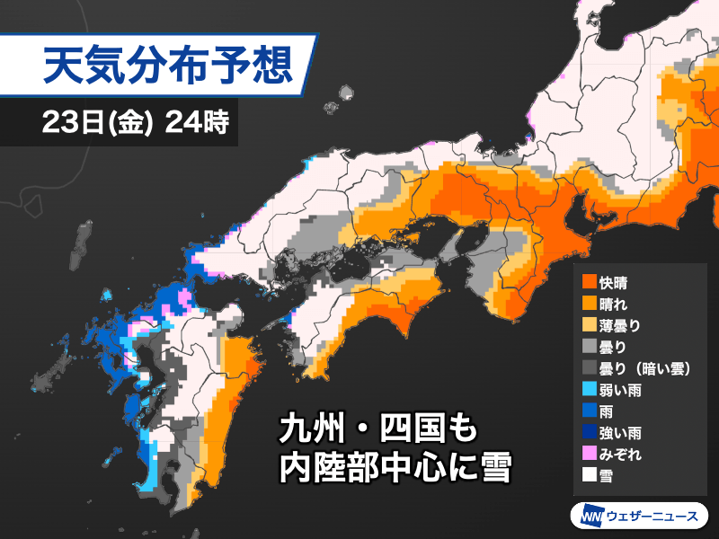 九州や四国は深夜から積雪の可能性