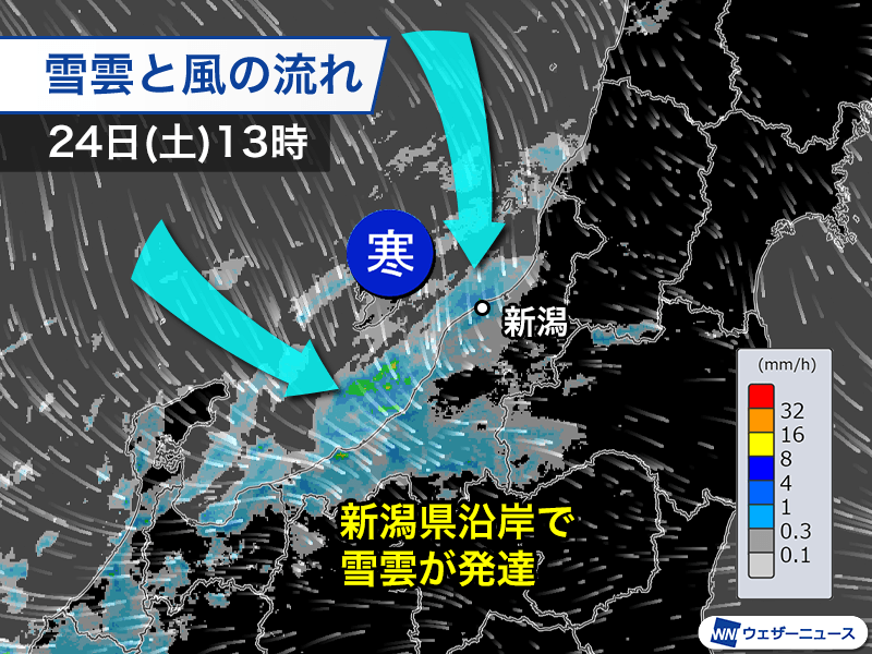 風向きの変化で新潟市にも強い雪雲