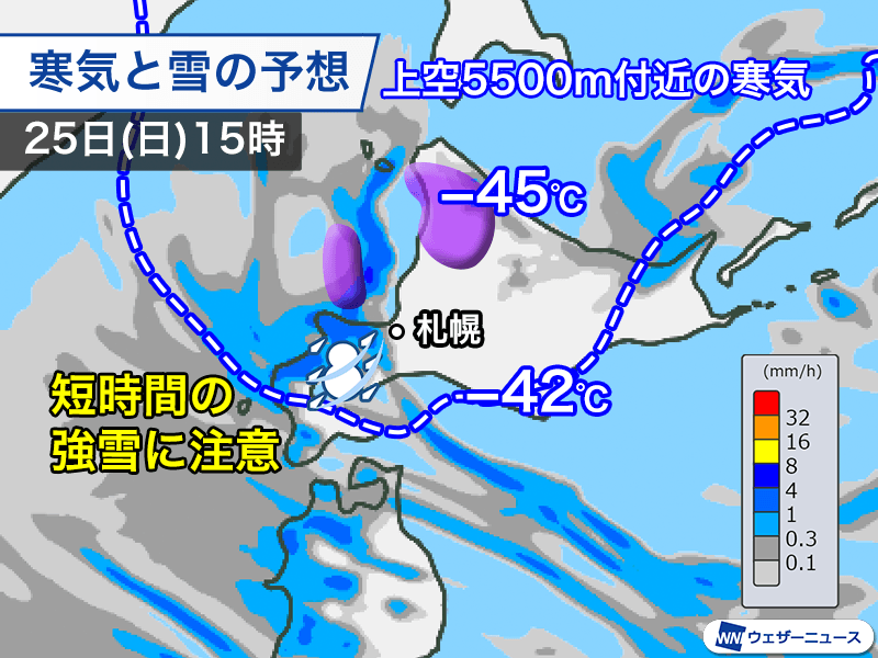 北海道上空に−45℃以下の寒気…