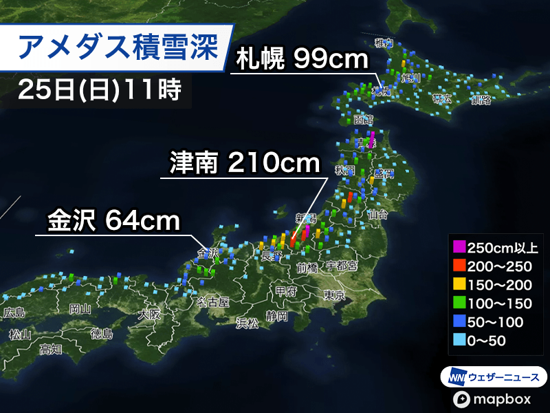 寒波2回目のピークで雪雲発達 金沢市や札幌市など都市部も記録的大雪