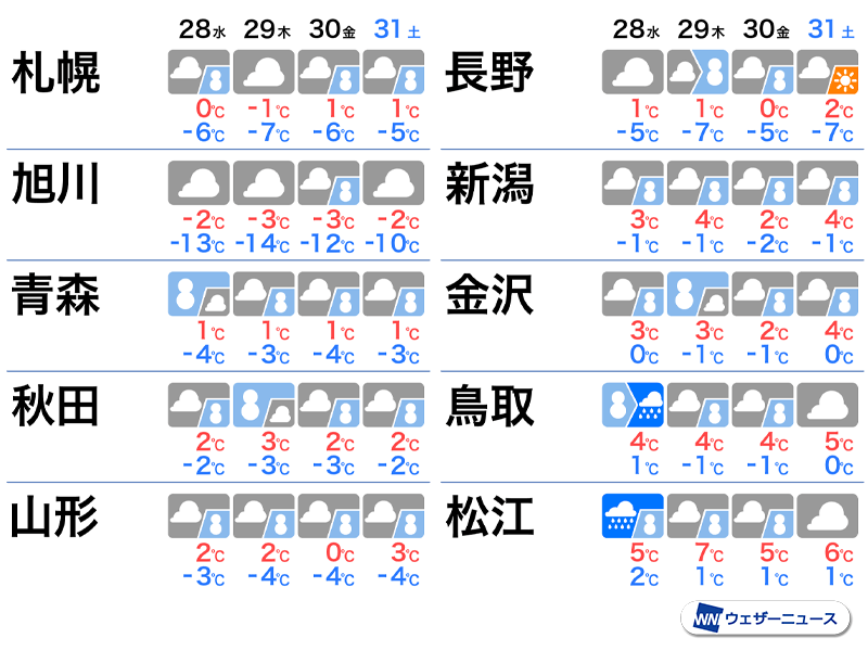 寒気が流れ込む期間は2〜3日ほどに及び、北日本や北陸に影響することから、今回より小規模ながらも寒波と言えそうです。