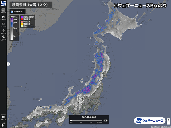 積雪が急増したことで、屋根からの落雪や雪崩の危険性も高くなっています。