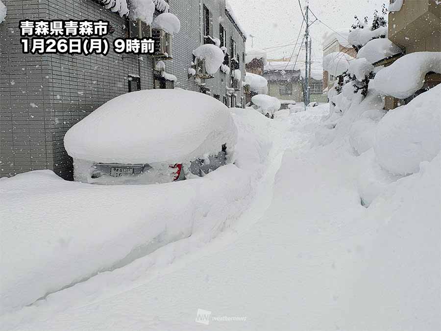 積雪の深さは青森市や秋田県仙北市角館、新潟県上越市高田などで1メートルを超え、市街地でも積雪が多くなっています。
