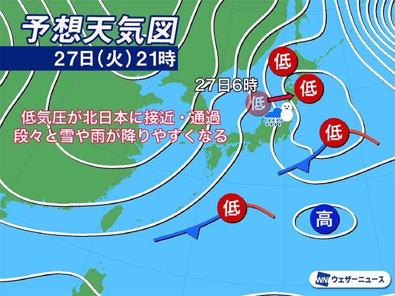 北海道の道南や道央も、午後は雪が降りやすくなる見込みです。東北の太平洋側でも、昼頃からは雪や雨の心配があります。