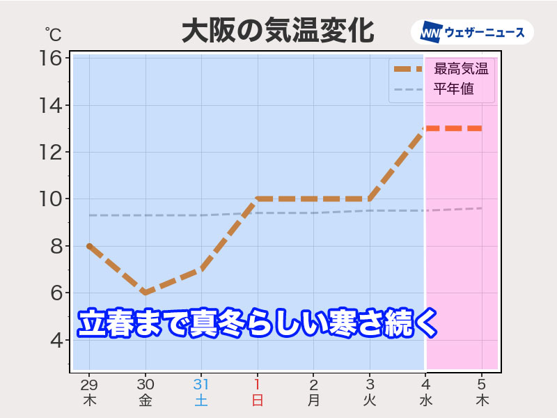 2月4日の二十四節気「立春」の頃になると、強い寒気が北上し、厳しい寒さは少し和らいでくれそうです。