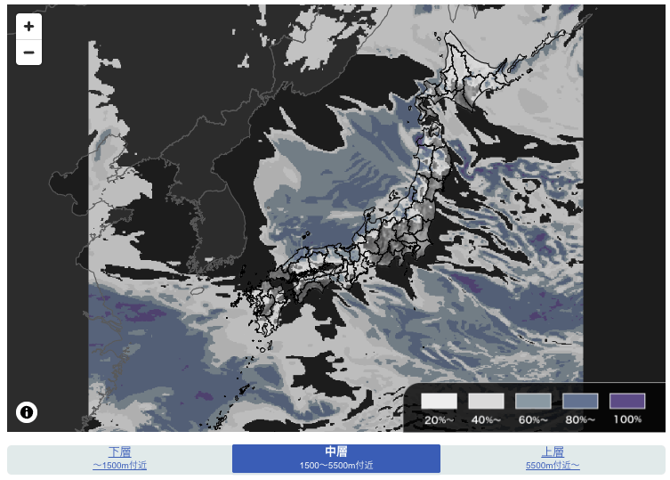この先の「雲量」予想マップ