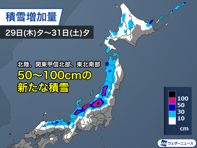 ・北陸、東北日本海側は積雪急増