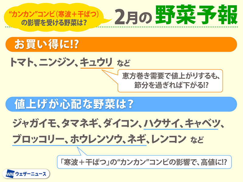 「寒波+干ばつ」の“カンカン”コンビの影響で値上がりする野菜は!? 2月の野菜予報