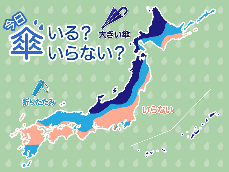 近畿北部や山陰は雪や雨の降る可能性があります。お出かけには折りたたみ傘をお持ちください。