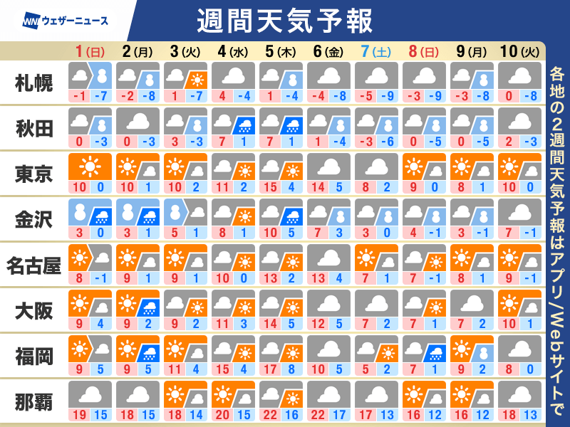 2月は寒暖差の大きい季節です。次の週末7日(土)頃には再び寒気が南下し、気温が大きく下がる見通しです。体調管理をしっかり行ってください。