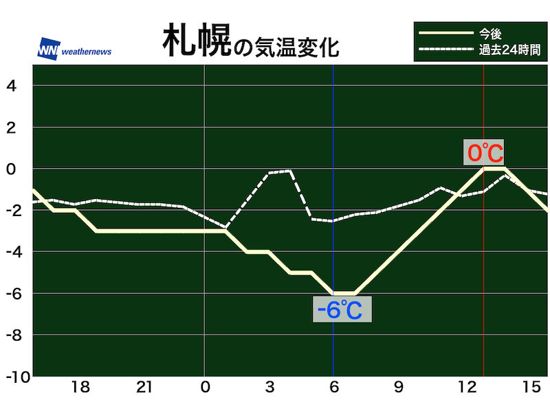 昼間は今日と同じくらいの気温になりますが、雲が多く雪が降ることもあって厳しい寒さです。